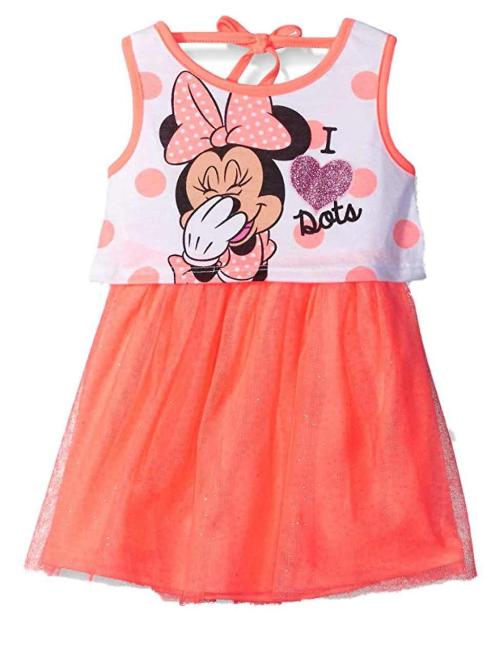 - Disney Girls Orange Minnie Mouse I Love Dots Dress with Tulle Skirt