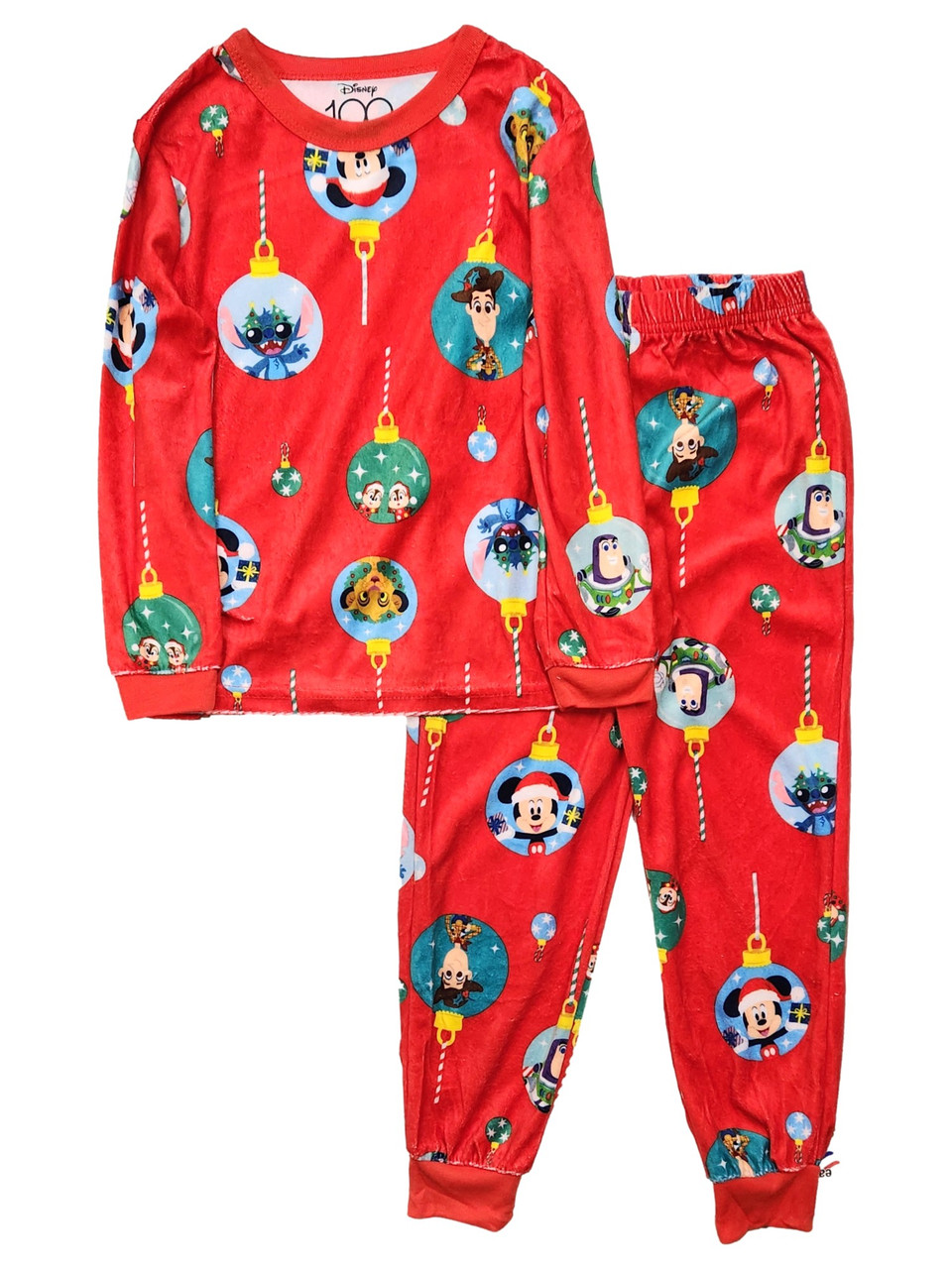 - Disney Girls Red Mickey, Simba & Stitch Christmas Ornament Sleep Set Pajamas