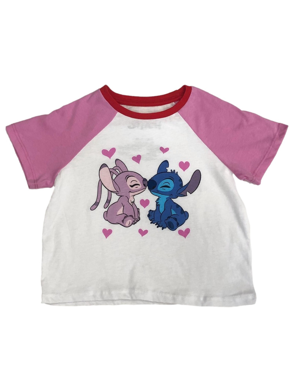 - Disney Girls Short Pink Heart Lilo & Stitch Valentines T-Shirt Tee Shirt