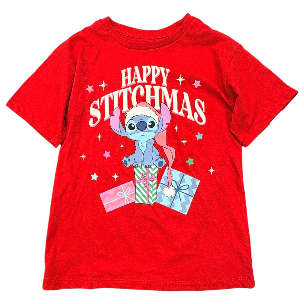 - Disney Girls Stitch Happy Stitchmas Short Sleeve Red Christmas T-Shirt