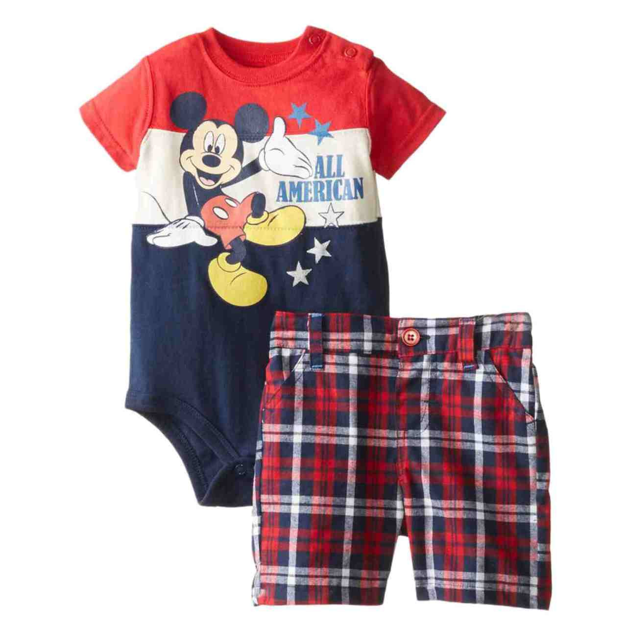 - Disney Infant Boys 2 Piece Mickey Mouse All American Bodysuit Plaid Shorts