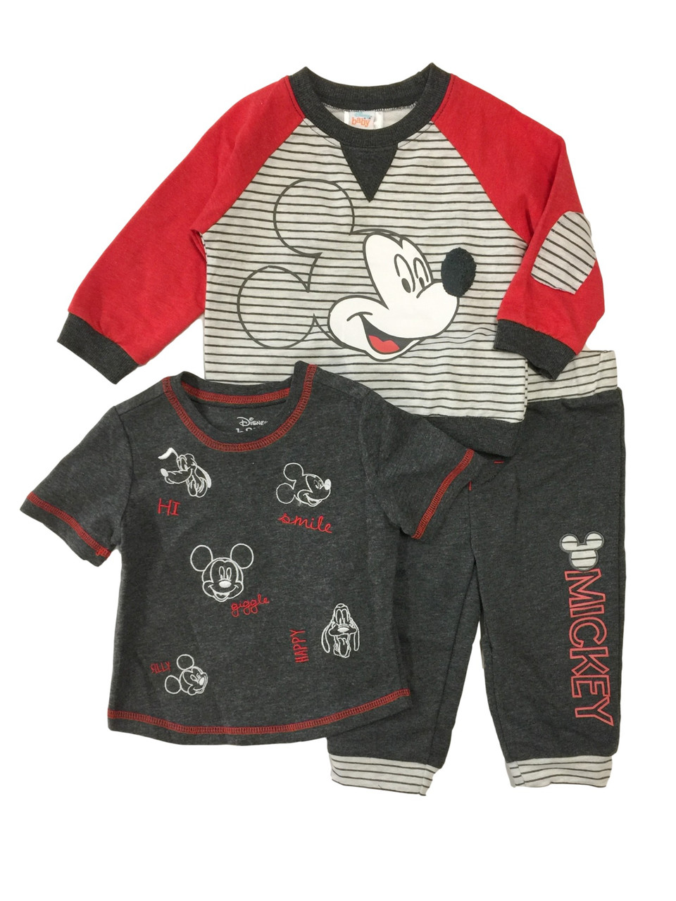 - Disney Infant Boys 3pc Gray Mickey Mouse Sweatshirt T-Shirt & Pant Set