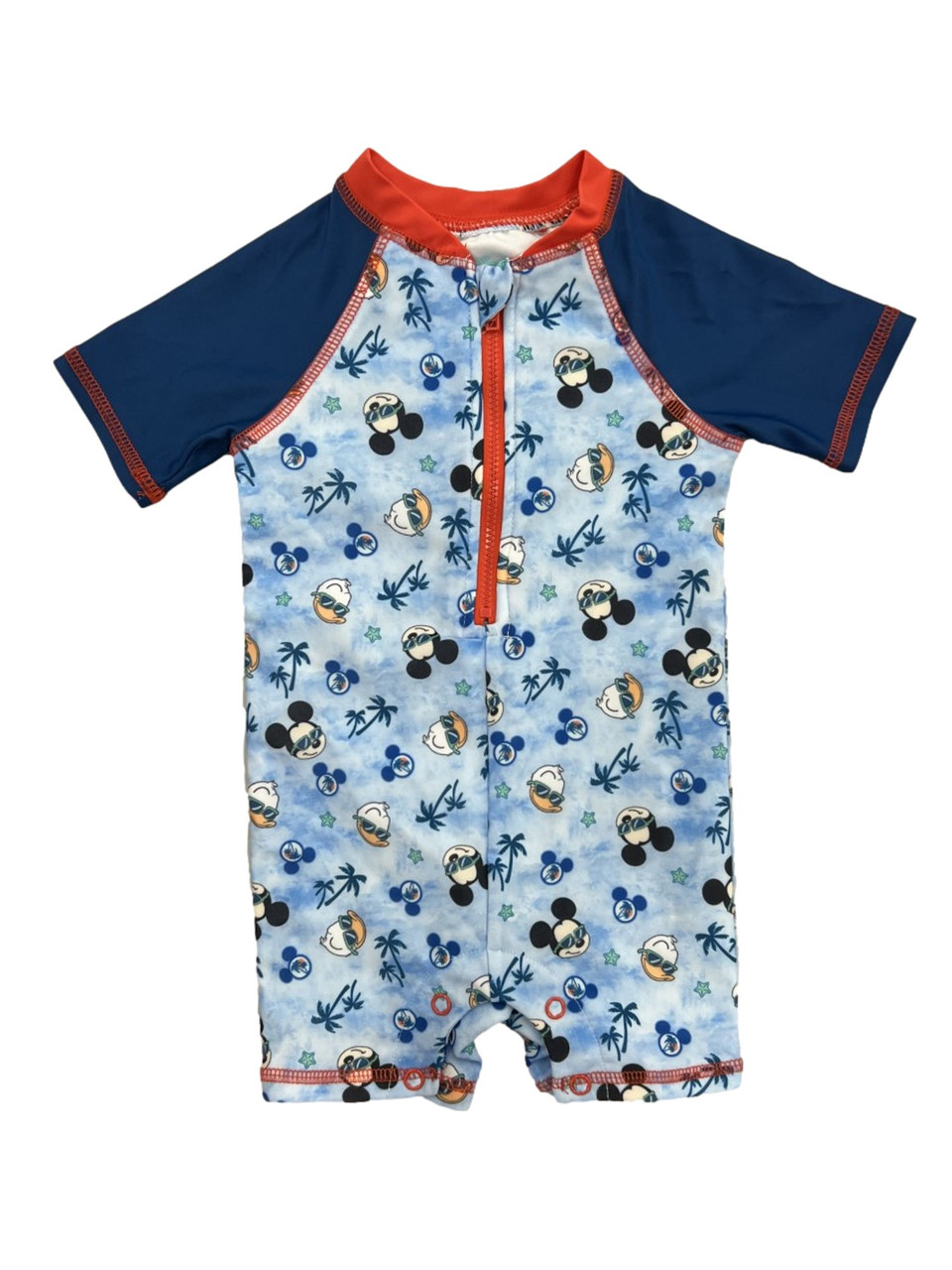 - Disney Infant Boys Mickey Mouse & Donald One Piece Zip Rash Guard Swimsuit