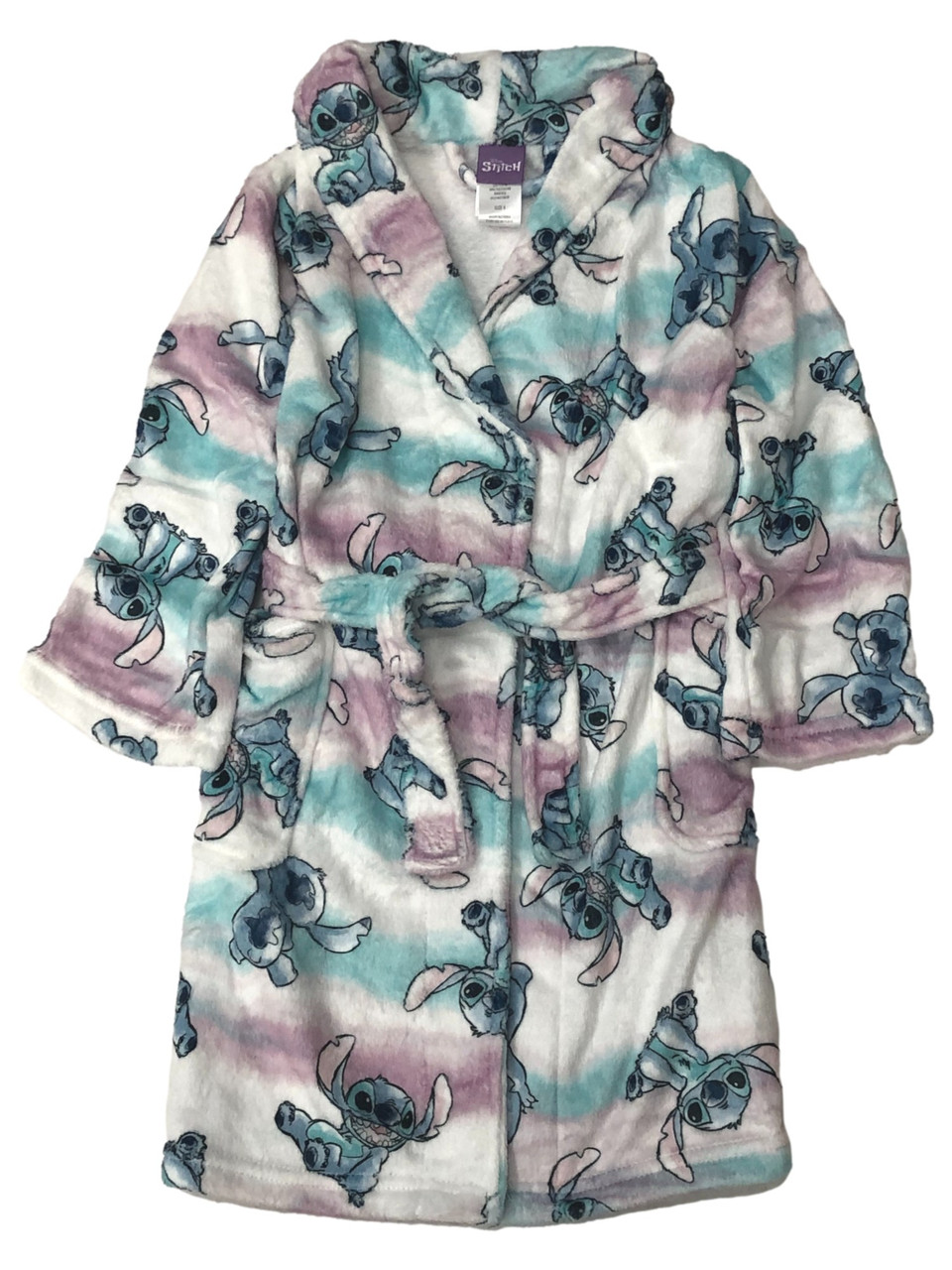 She will love wearing this soft white rainbow striped Disney "Stitch" themed bathrobe around the house at bedtime!