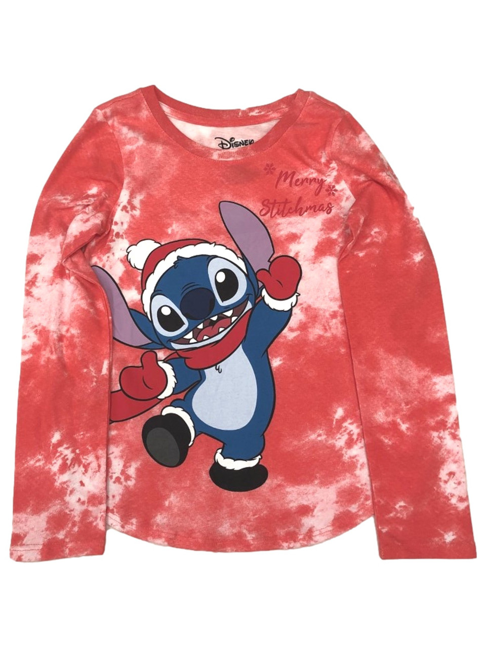 She will love wearing this adorable long sleeved red tie dye Lilo & Stitch themed holiday t-shirt the Christmas season!