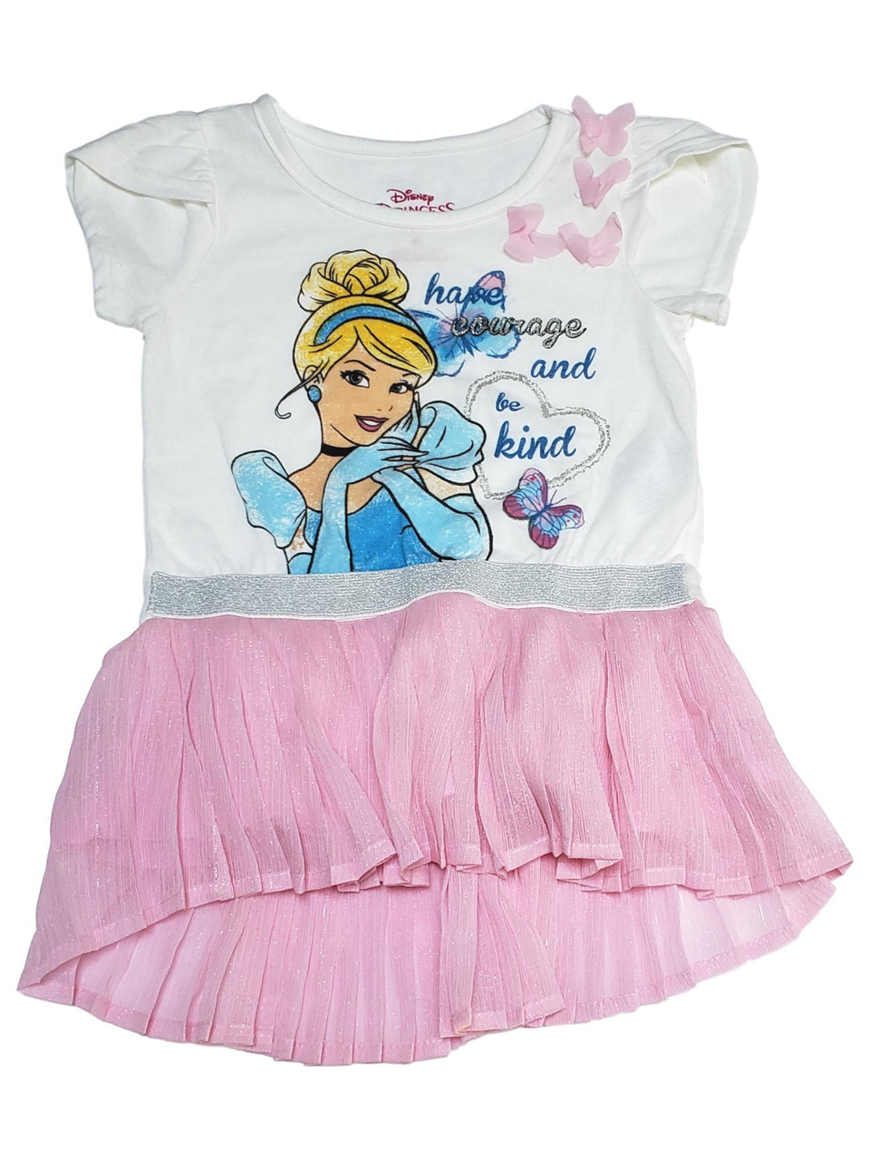 - Disney Princess Girls Pink Cinderella Butterfly Glitter Pleat Tunic Shirt