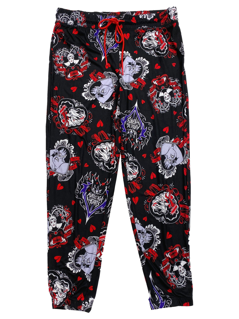You will love the cozy silky feel of these fun black Disney Villains themed jogger style pajama bottoms!