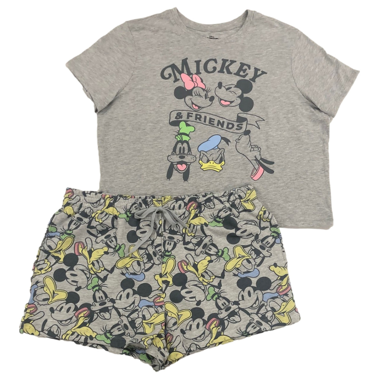 - Disney Womens Gray Mickey Mouse & Friends Pajamas Tee & Shorts Sleep Set