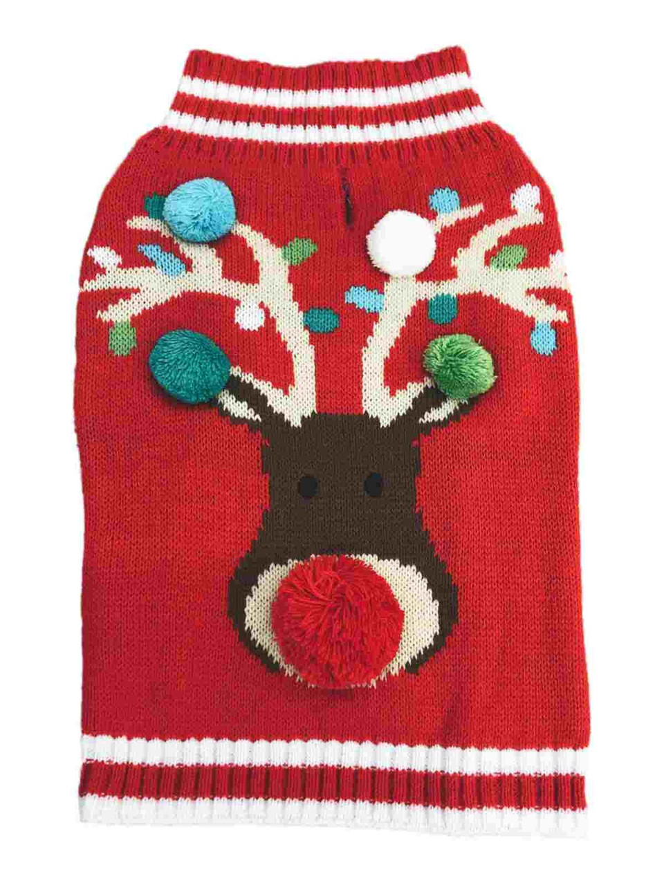 Your dog will look festive and ready to go for the Christmas party in this cute red Rudolph the red nosed reindeer dog sweater!