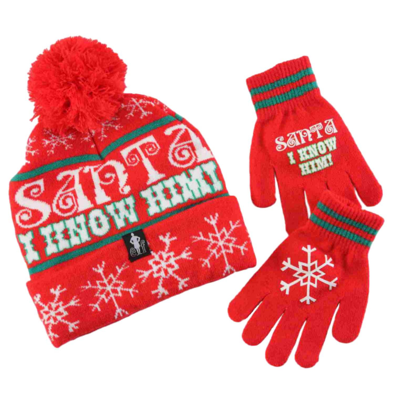 - Elf Movie Boys Santa I Know Him Red Knit Winter Hat & Gloves Beanie Set