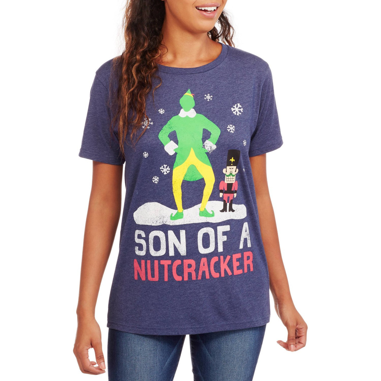 - Elf Junior Womens Blue Son Of A Nutcracker Holiday Christmas Tee T-Shirt