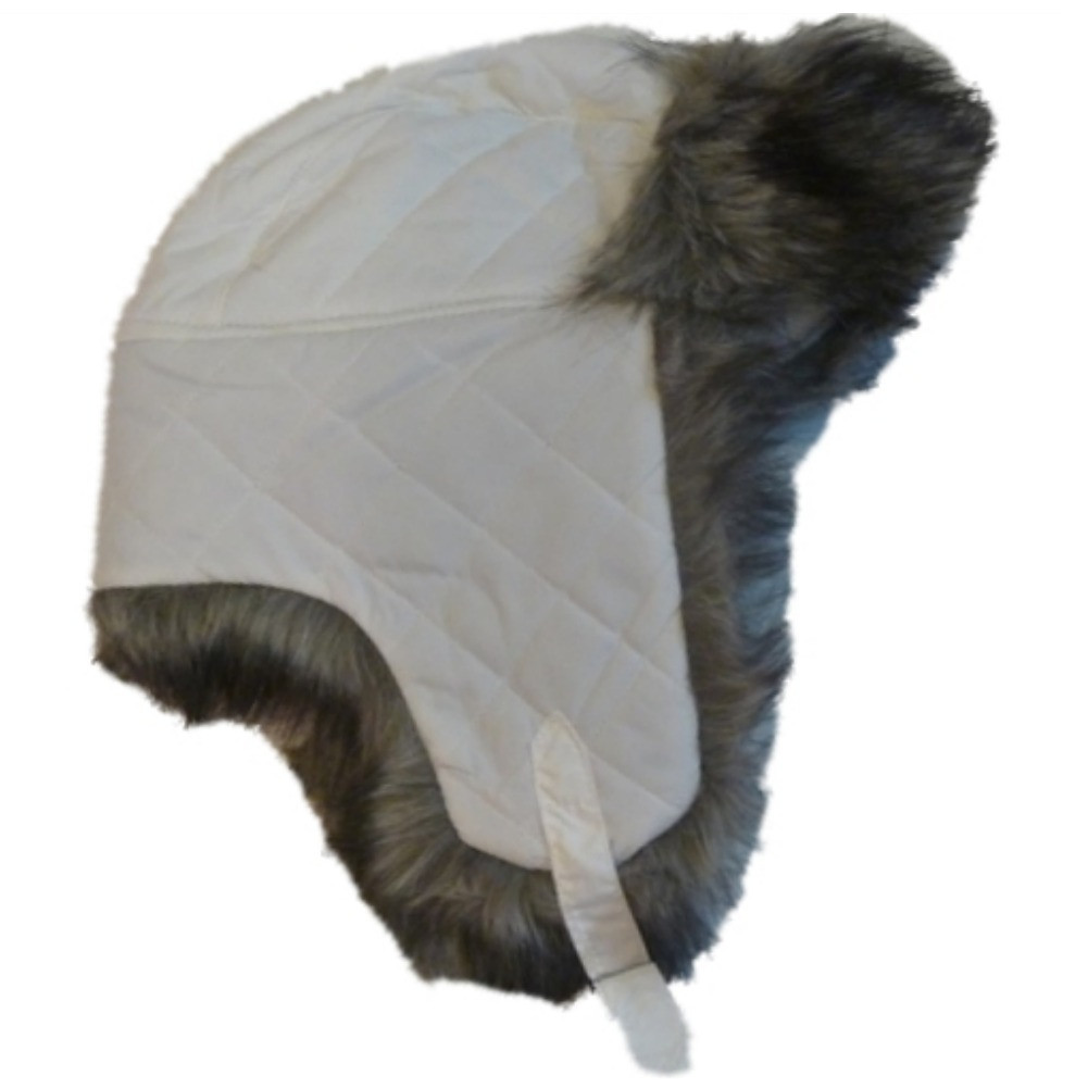 - Envision Studio Womens Quilted White Trapper Hat with Plush Gray Fur Aviatior