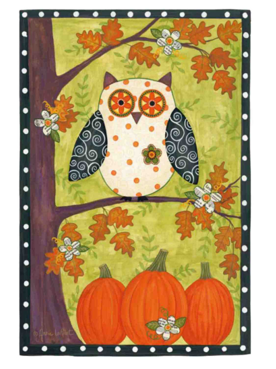 - Evergreen Owl & Pumpkins Autumn Fabric Garden Flag 18 by 12 Inch