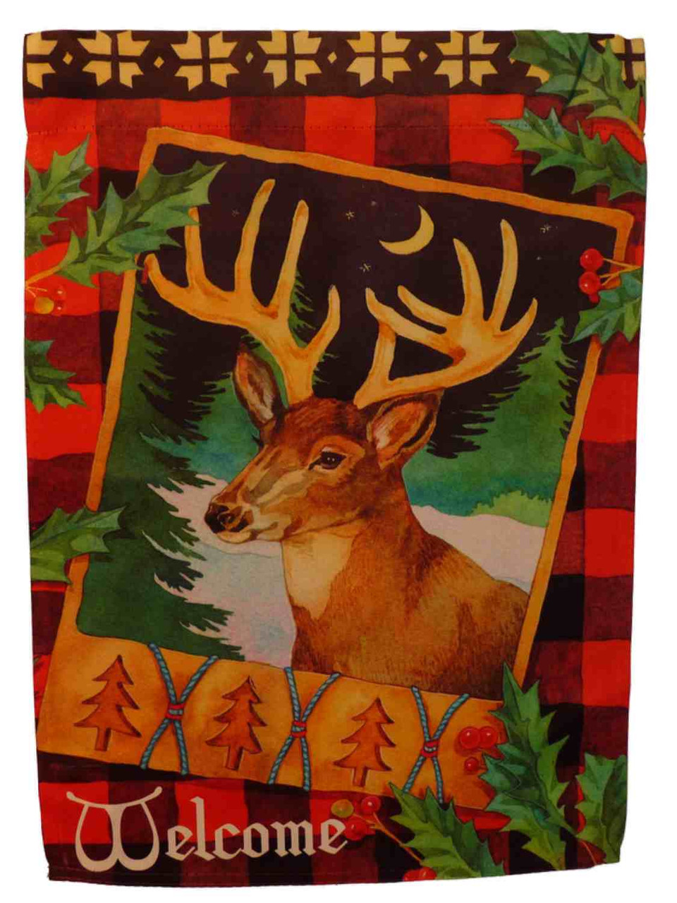 - Evergreen Welcome Alpine Deer Holiday Fabric Garden Flag 18 by 12 Inch
