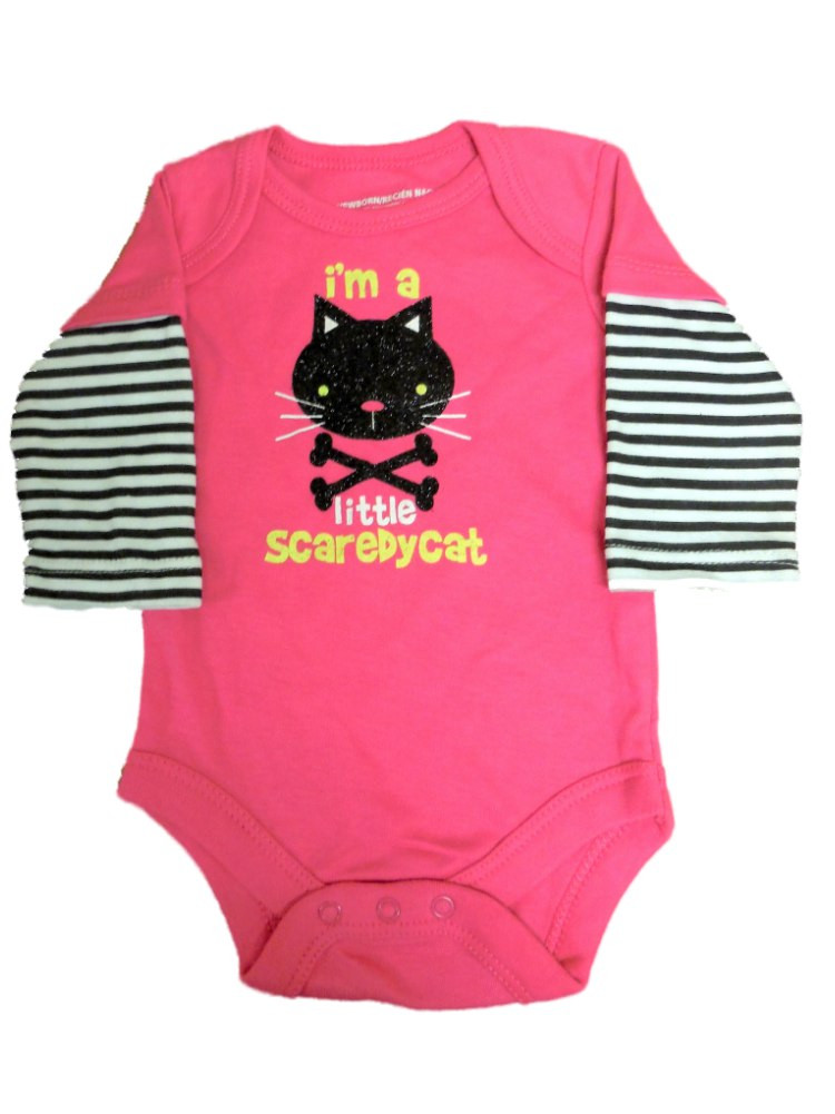 - F Glory Infant Girl Pink Little Scaredy Cat Creeper Halloween Kitty Shirt