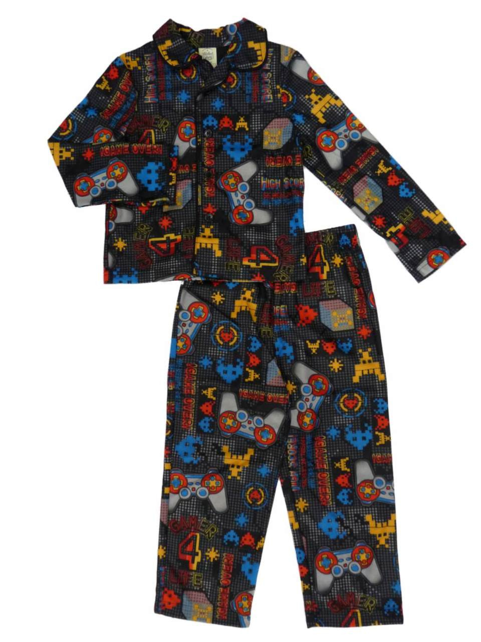 - Faded Glory Boys Black Flannel Pajamas Video Game Themed Sleepwear Set 4-5