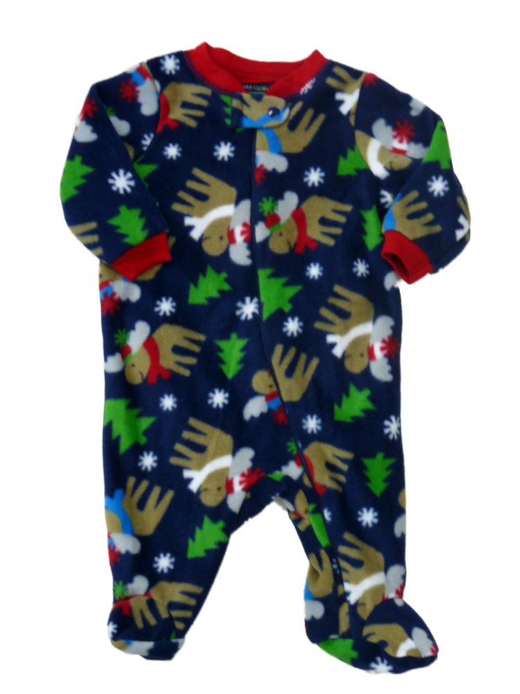 - Infant Boys Blue Fleece Moose Sleeper Christmas Holiday Pajamas