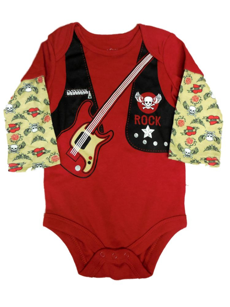 - Faded Glory Infant Boys Red Rock Star Creeper Snap Bottom Halloween Shirt