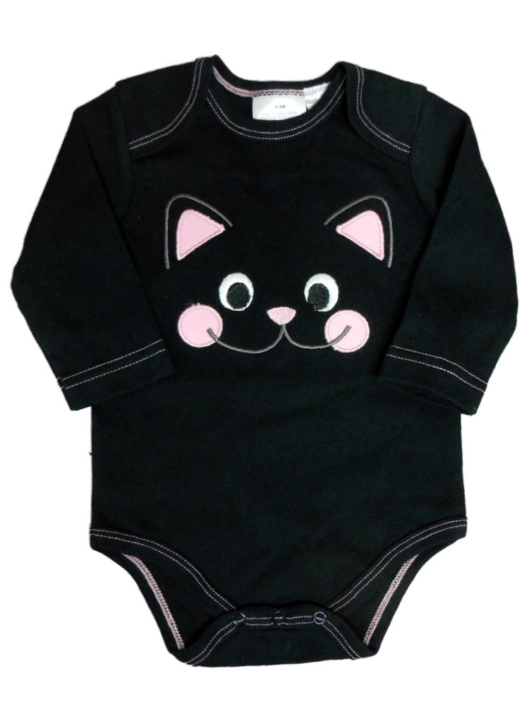 - Faded Glory Infant Girl Black Cat Snap Bottom Creeper Halloween Kitty Shirt