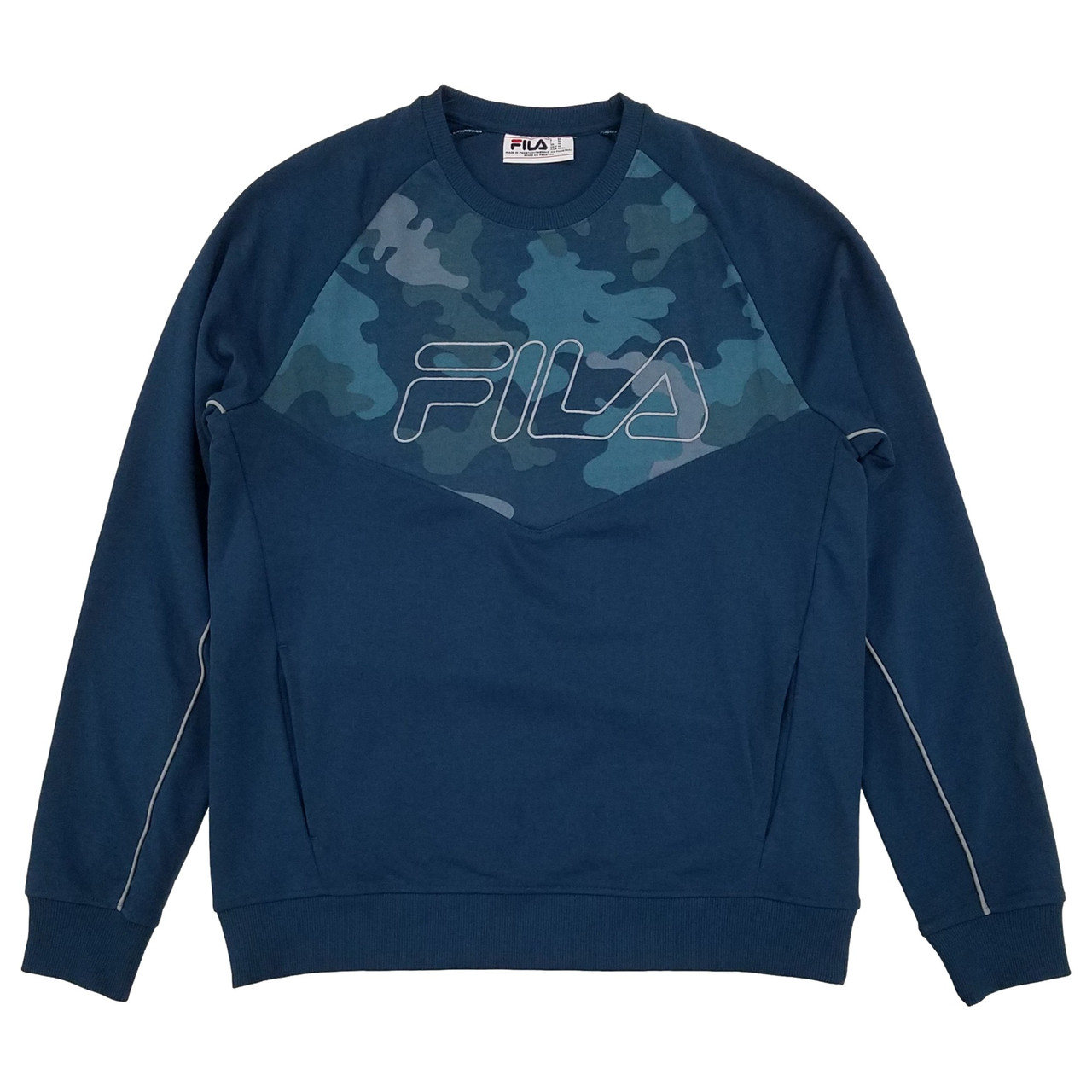 - Fila Mens Blue Camouflage French Terry Crew Pullover Sweatshirt