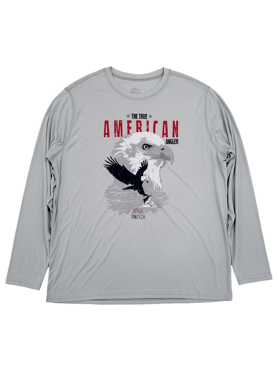 - Fintech Mens Gray Bald Eagle Long Sleeve Performance Fishing Shirt