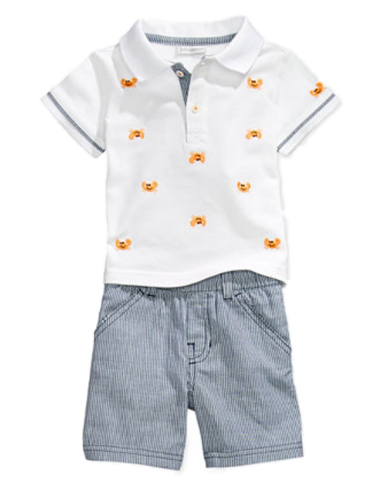 - First Impressions Infant Boys 2 Piece Crab Polo T-Shirt & Striped Shorts