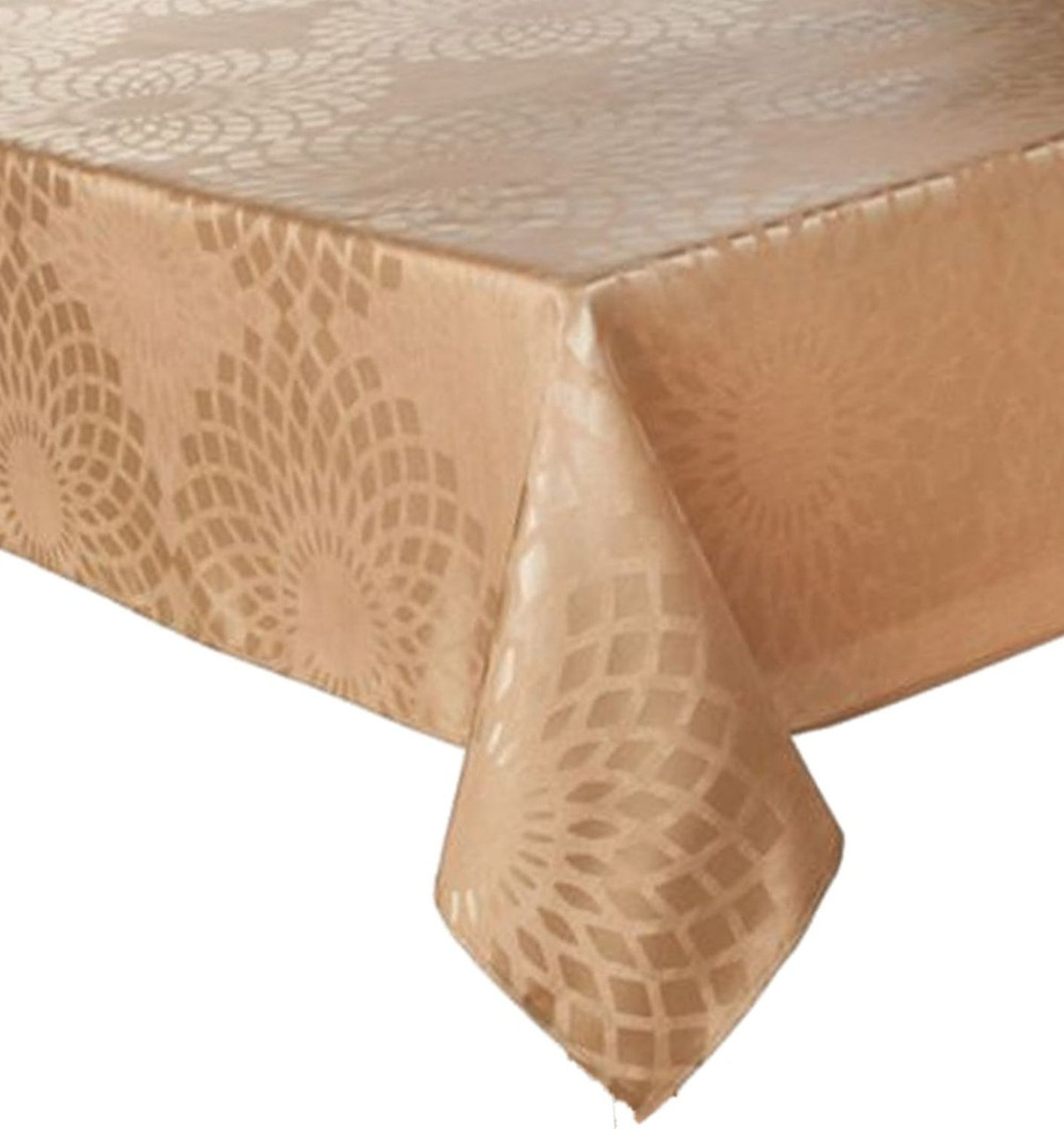 This Food Network fabric tablecloth has a great look. It features a pretty gold yuletide glow pattern. It will add style and elegance to any table