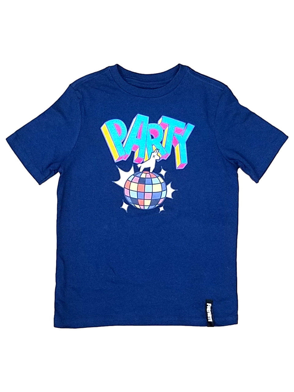 He will love wearing this fun blue short sleeved Fortnite "Party" themed video gamer t-shirt!