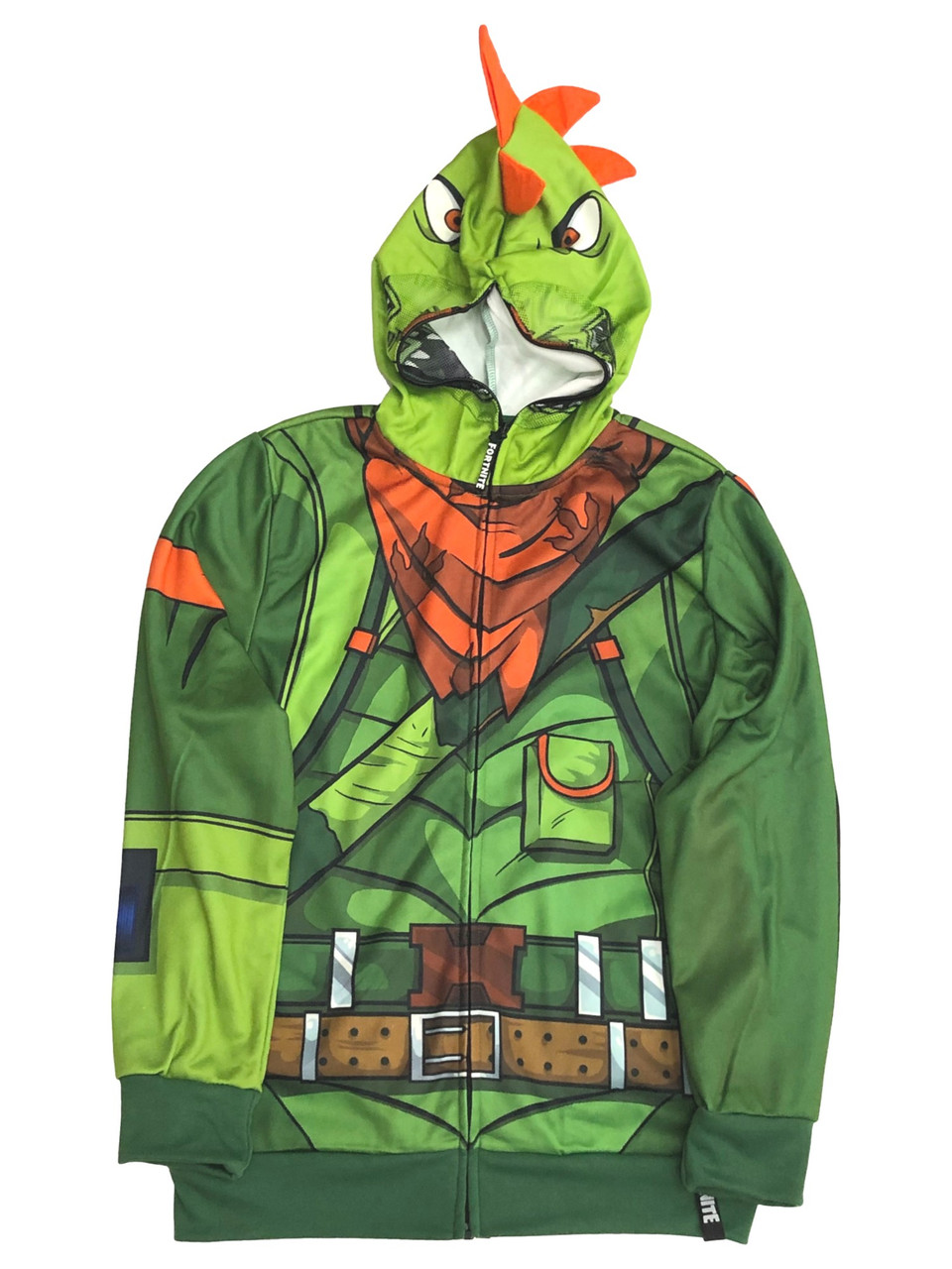 - Fortnite Boys Green Rex Dinosaur Cosplay Hoodie Zip Front Sweatshirt Large 10-12