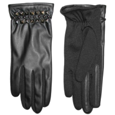 These gorgeous black leather look gloves have decorative metallic studs for an edgy look.