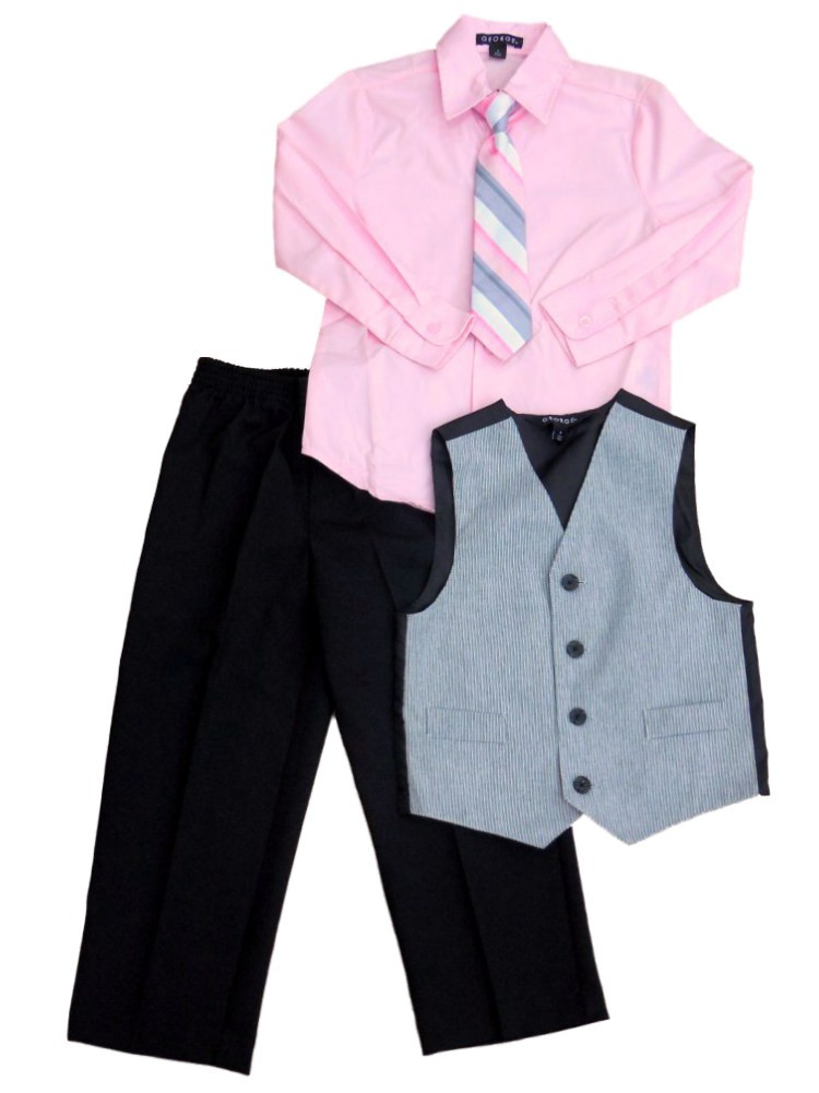 - George Boys Holiday Outfit Pink Dress Shirt Pinstripe Vest & Slacks