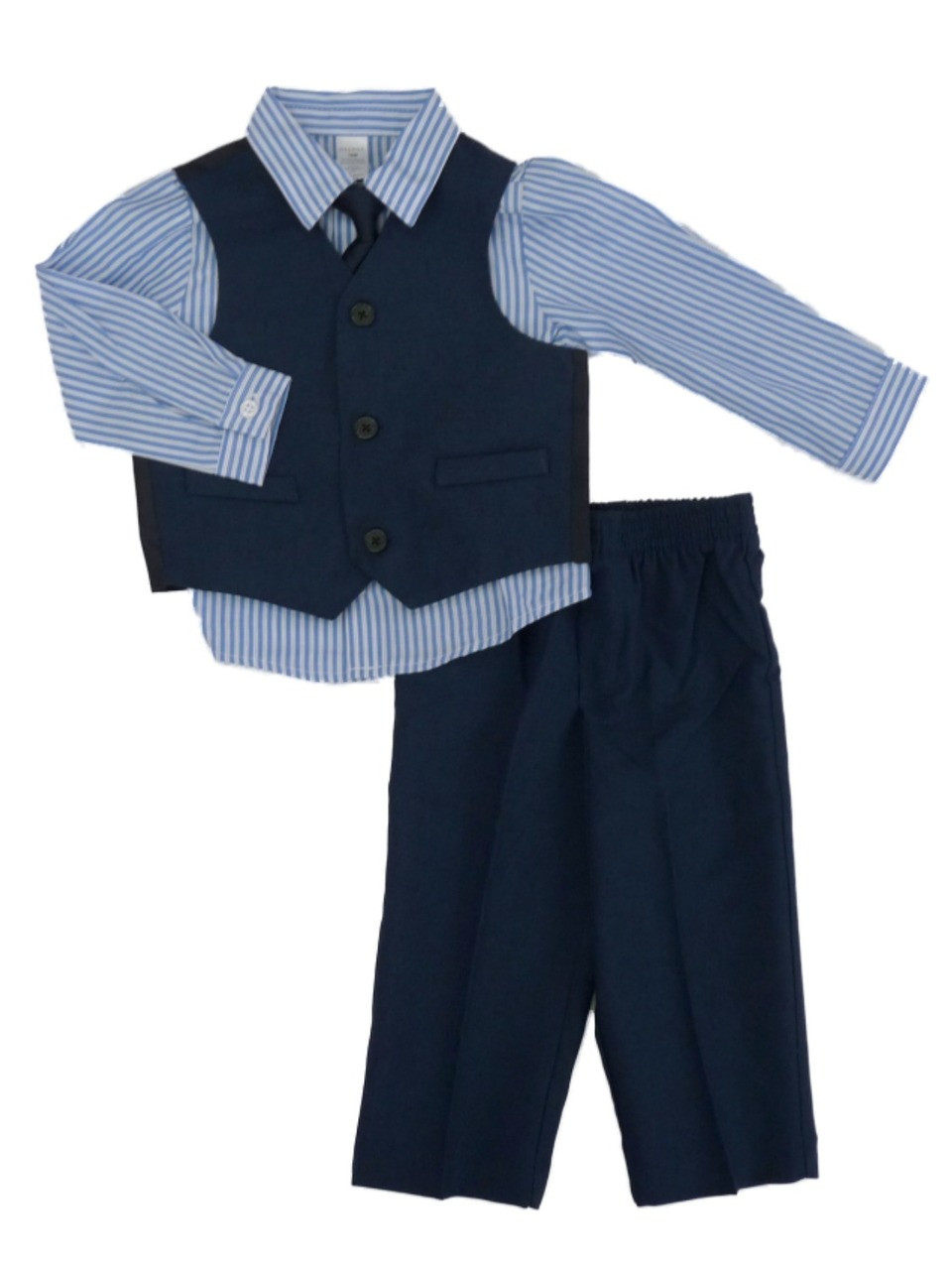 - George Infant Boys Blue Striped Shirt Vest Tie Pants 4P Dress Up Outfit