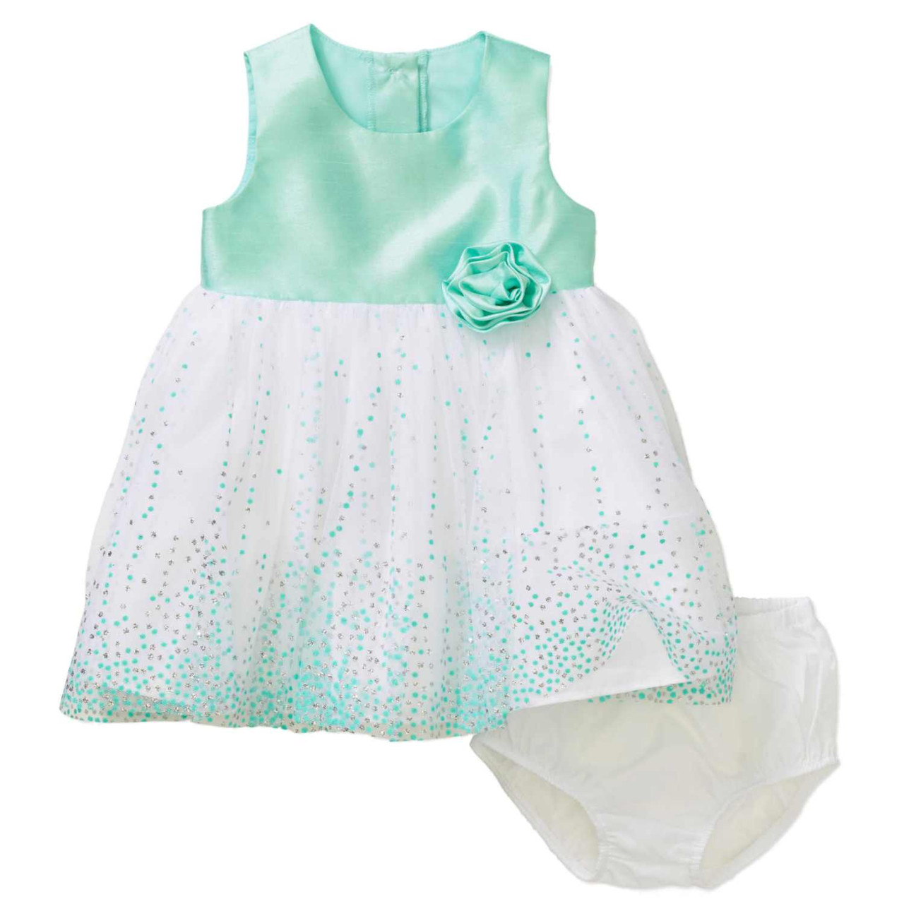 - Infant Girls Mint Green & Silver Polka Dot Satin Baby Easter & Holiday Dress