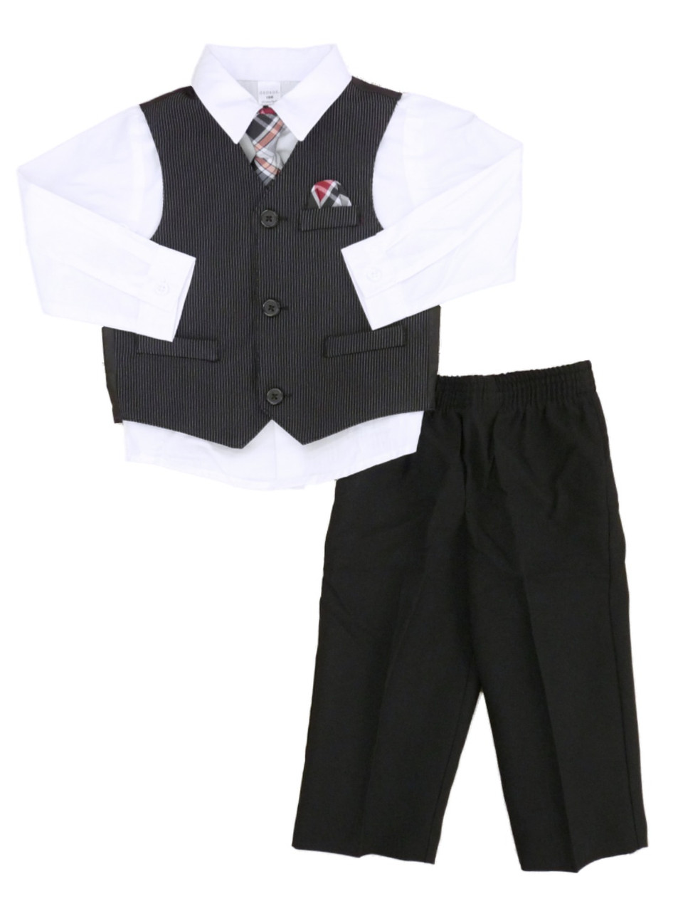 - George Infant & Toddler Boys White Shirt Vest Tie & Pants 4P Dress Up Outfit