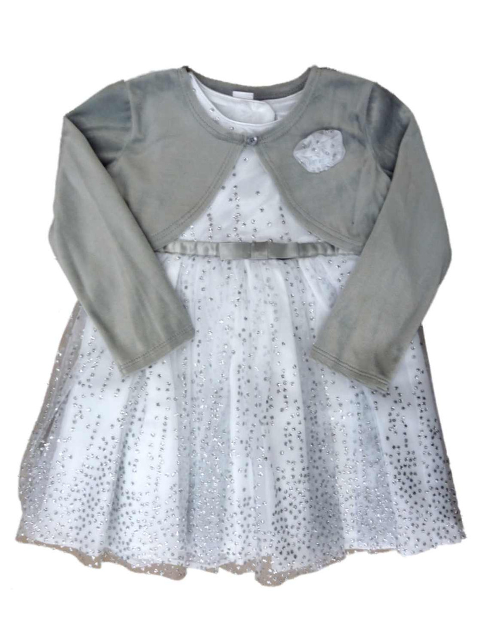 - Infant & Toddler Girls White Formal Holiday Dress & Gray Shrug Baby Outfit