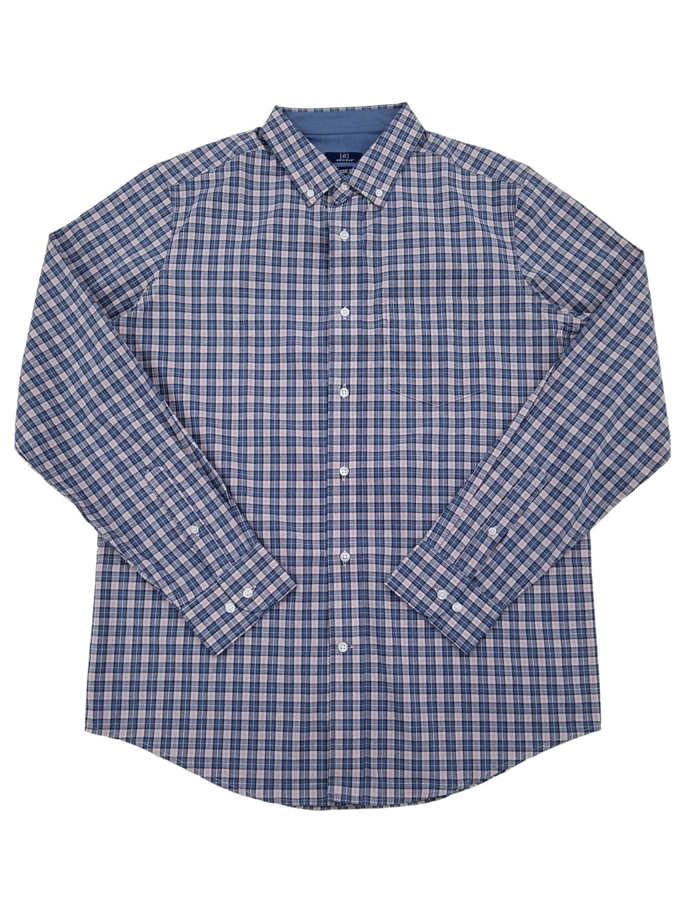 - George Mens Pink & Blue Plaid Stretch Poplin Long Sleeve Button-Down Shirt