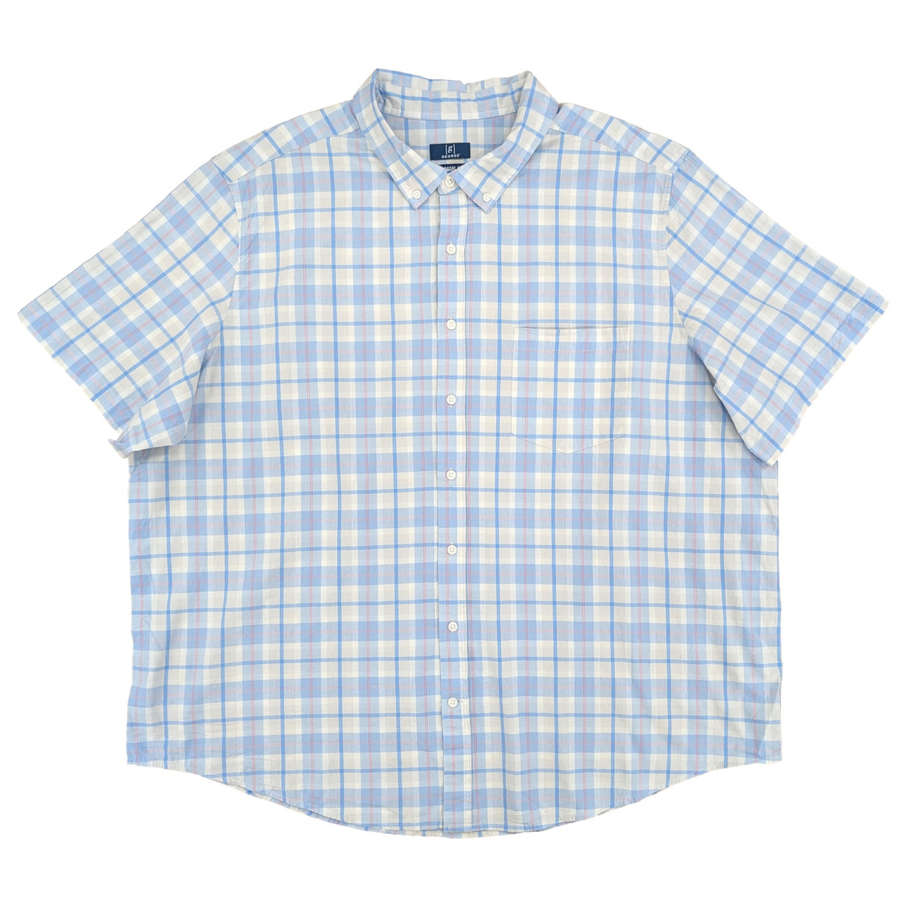 - George Mens Sterling Gray Plaid Short Sleeve Button-Up Poplin Shirt 3XL