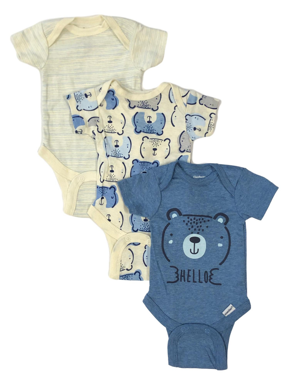 - Gerber Infant Boys 3pc Organic Cotton Hello Bear Bodysuits Baby Outfit Preemie