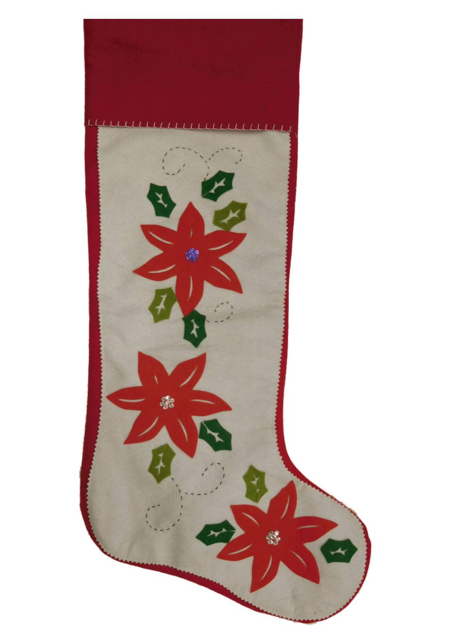 - Giant 39 Inch White & Red Felt Poinsettia Christmas Flower Holiday Stocking