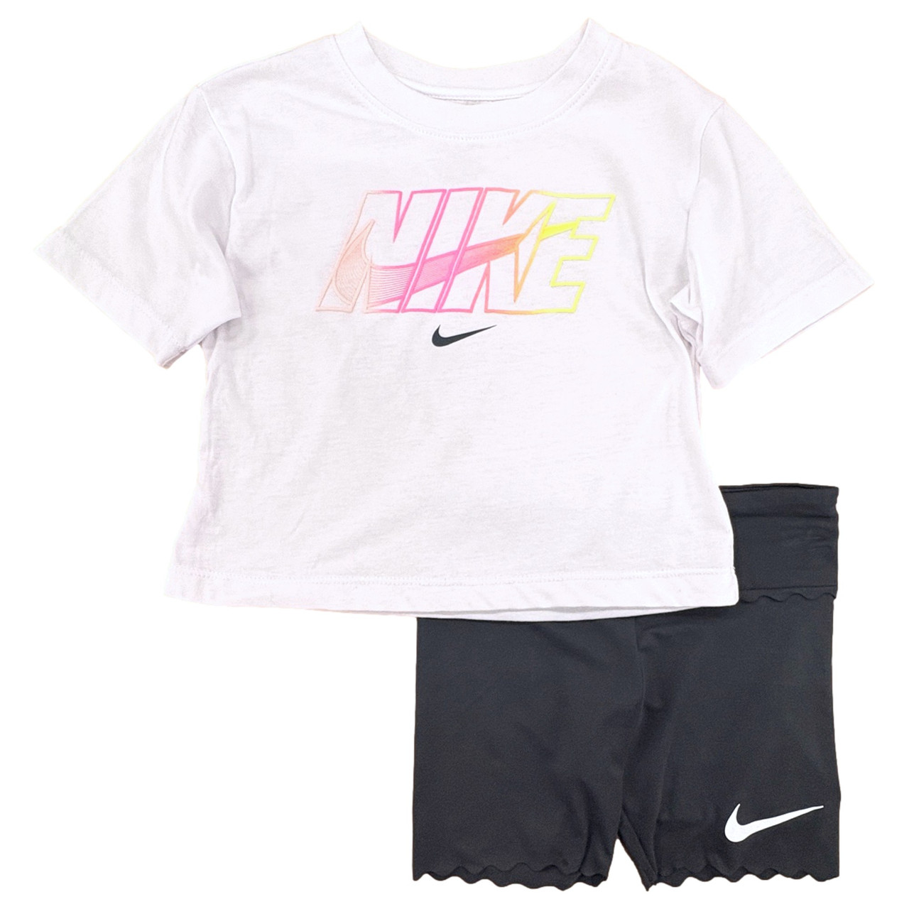 - Girls 2PC Nike Outfit White T-Shirt & Gray Dri-Fit Bike Shorts Set