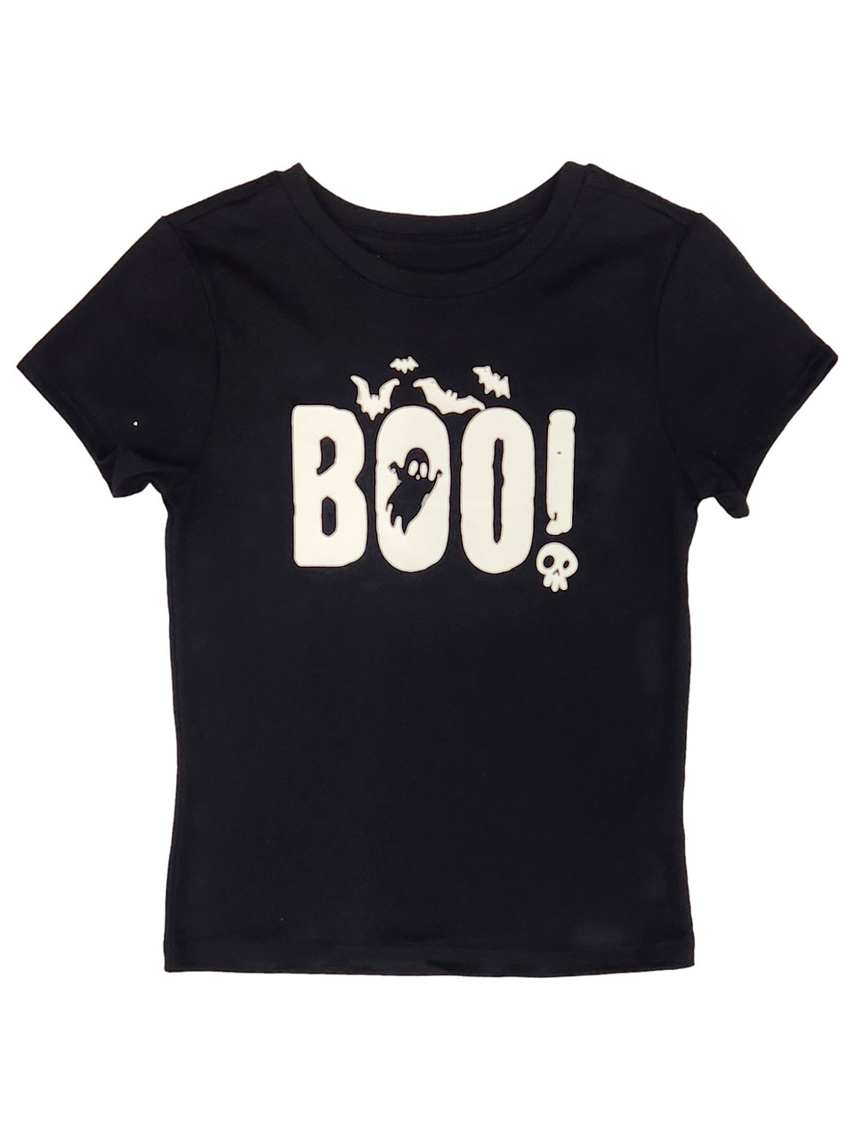 - Girls Black Boo With Bats Short Sleeve Halloween T-Shirt Tee Shirt