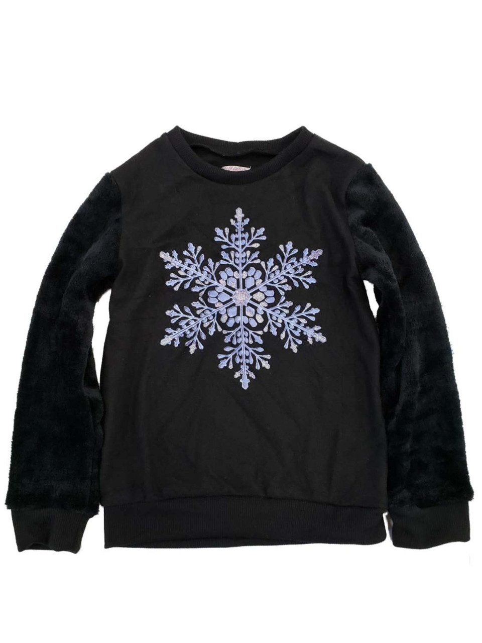 - Girls Black Holiday Christmas Snowflake Plush Glitter Sweatshirt Sweat Shirt