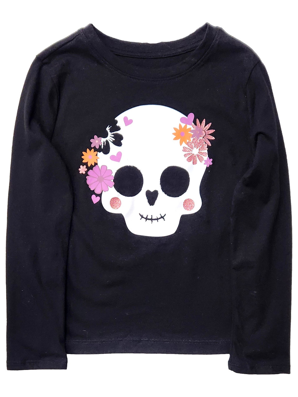 - Girls Black Long Sleeve Glitter Sugar Skull Halloween T-Shirt Tee Shirt M 7/8