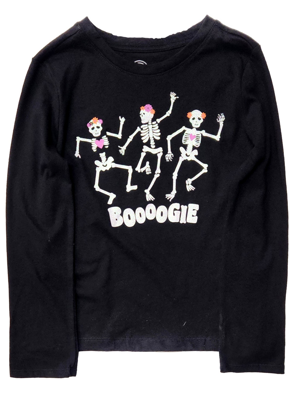 - Girls Black Skeleton Boooogie Long Sleeve Halloween T-Shirt Tee Shirt
