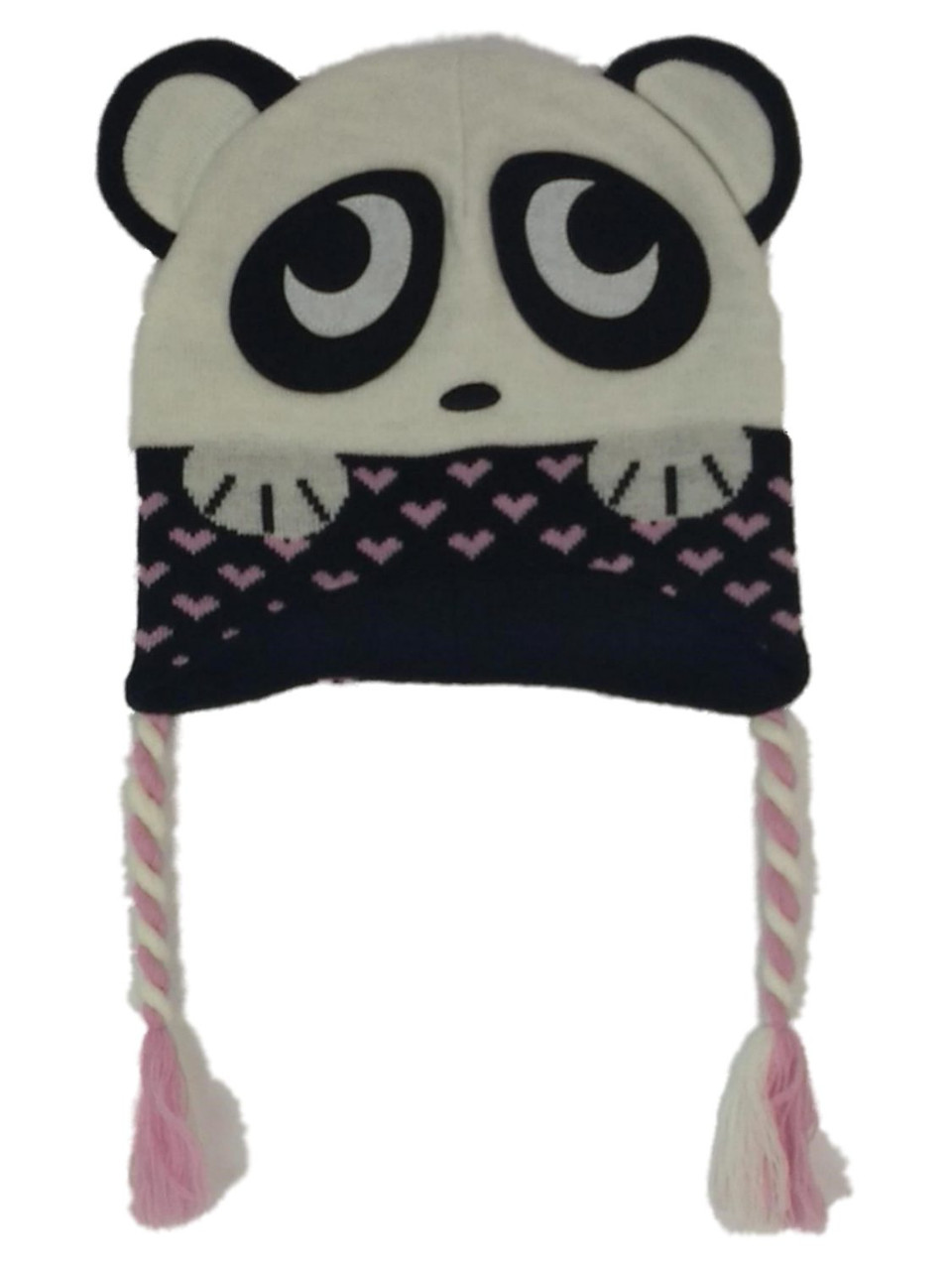 - Girls Black & White Panda Bear Heart Peruvian Style Critter Trapper Hat