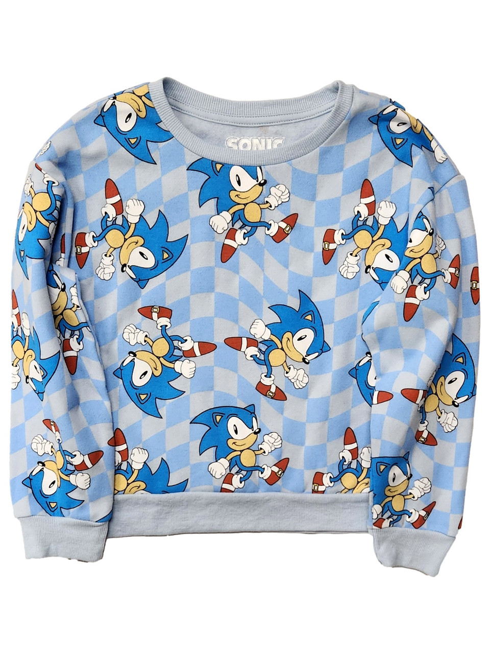 - Girls Blue Sonic The Hedgehog Checker Print Sweatshirt Sweat Shirt