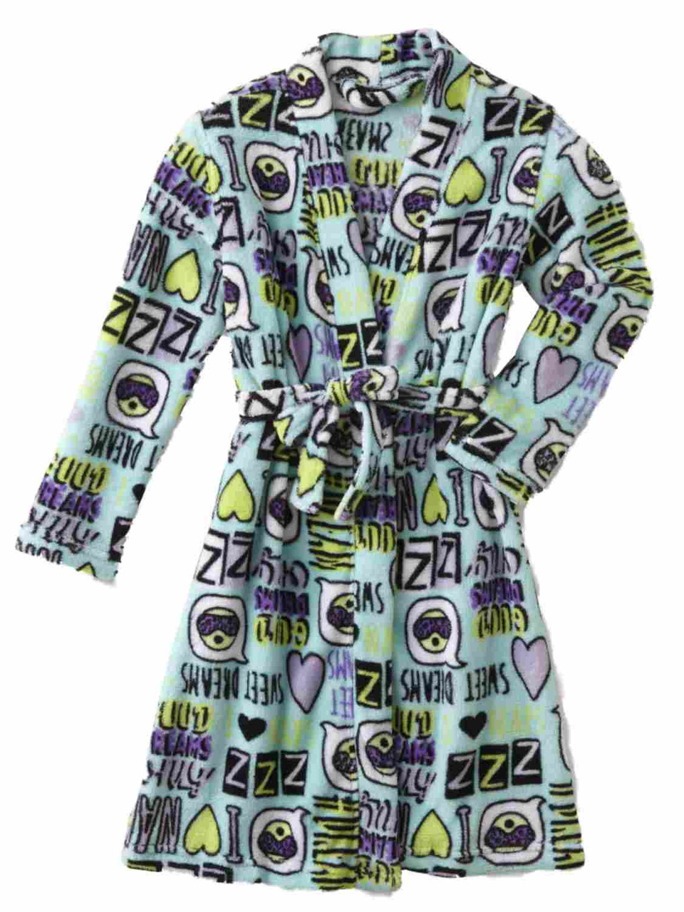 - Girls Blue Sweet Dreams Bathrobe I Love Naps Bath Robe Emoji House Coat