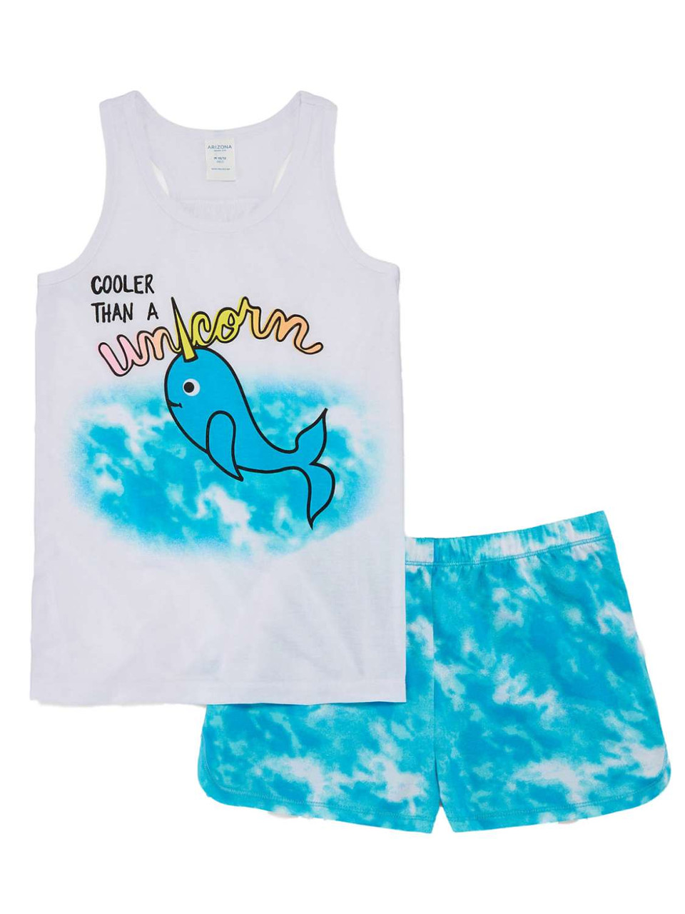 - Girls Cooler Than A Unicorn Pajamas Blue Whale Shorts & Tank Top Sleep Set