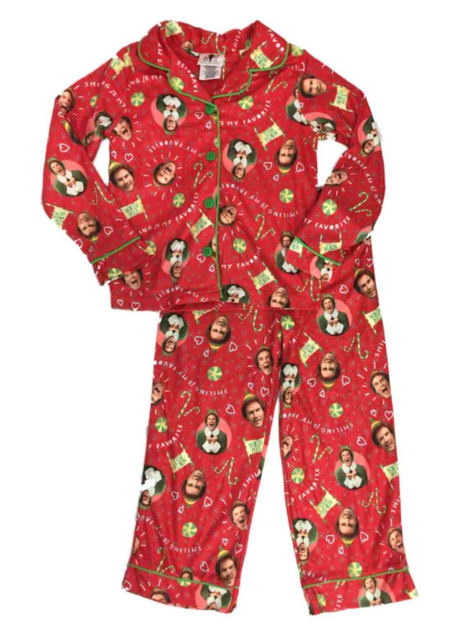 These fun girls red Elf "smiling is my favorite" Christmas button up flannel pajamas are sure to be a favorite!