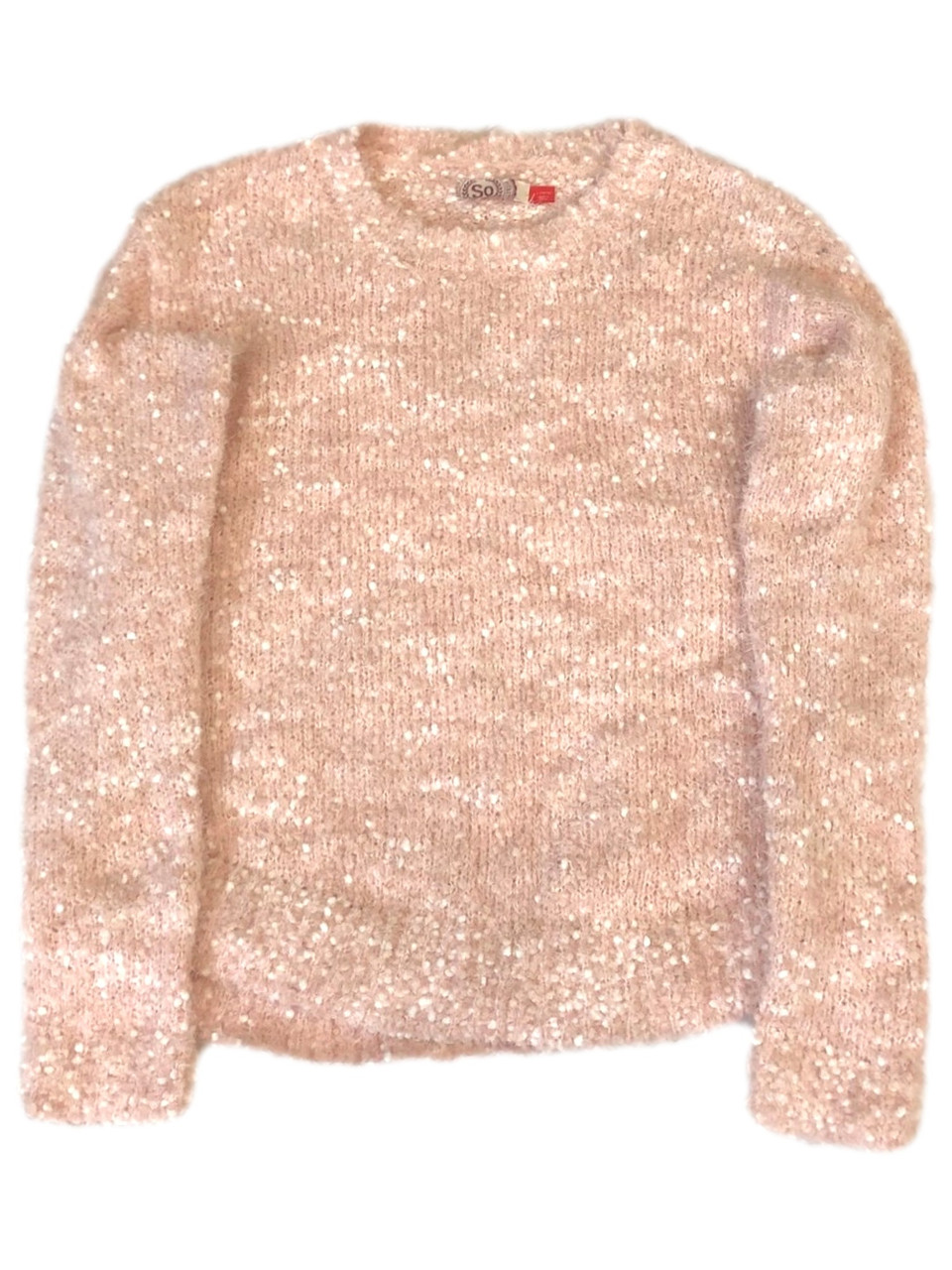 - Girls Fuzzy Plush Pastel Peach & White Pull-over Sweater Large (10-12)